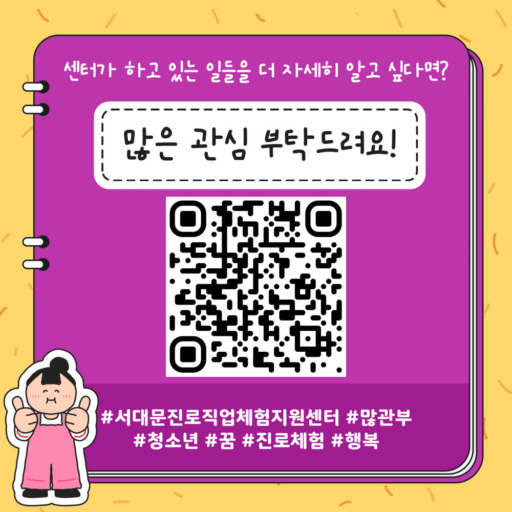 ◆ 센터가 하고 있는 일들을 더 자세히 알고 싶다면~? QR코드를 통해 접속해주세요!